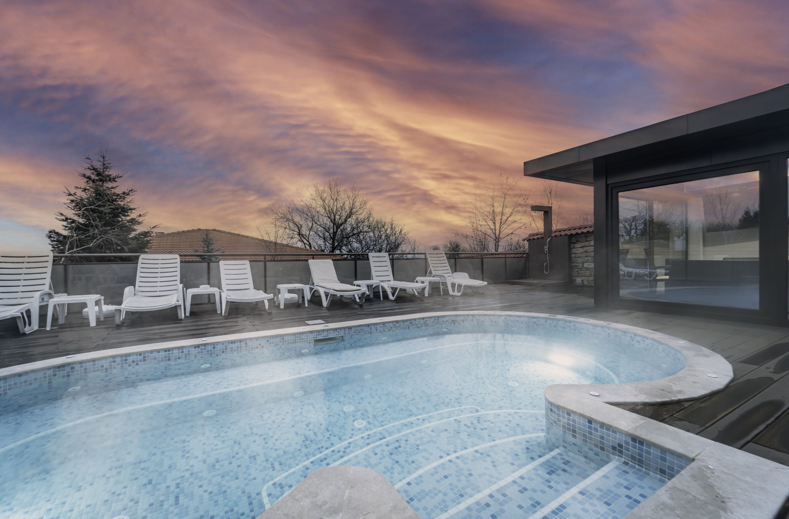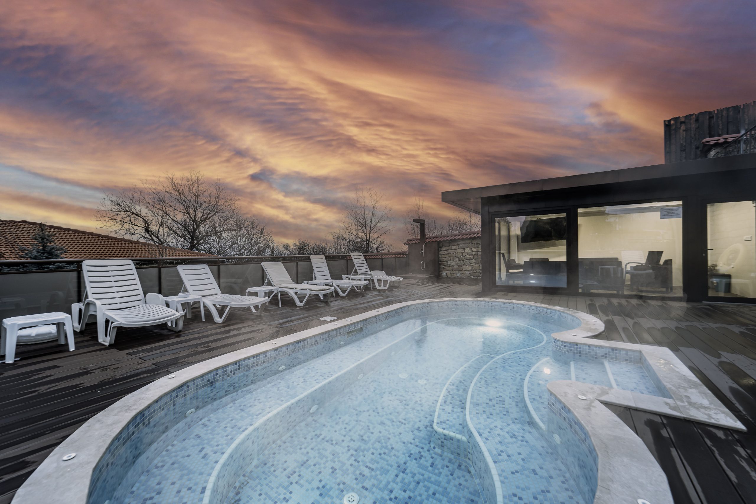 Изпитайте вълшебни преживявания в целогодишно топлите ни вътрешни и външни басейни, подходящи за любителите на нощно къпане под лунна светлина, независимо от времето и сезона.